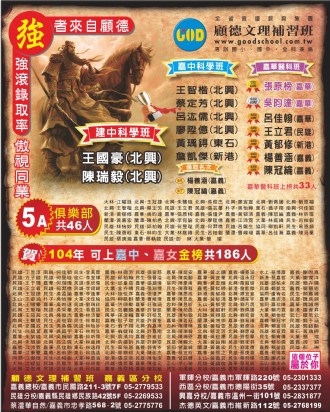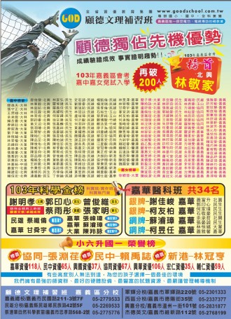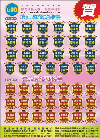 109年 嘉中嘉女資優班 金榜..