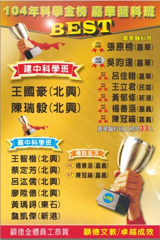 110年 嘉中科學班 金榜..